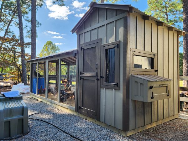 Our biggest chicken coop with board & batten that holds the most chickens.